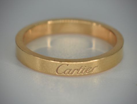 An 18ct rose gold C de Cartier Band ring. The ring having Cartier signature to face of  band. French assay marks and serial number to interior of band. Weight 4.10g. Size P.5/ 57