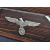 An original WWII Second World War Third Reich Nazi German letter rack. Coromandel wood construction with x2 letter compartments with bone edge details and white metal Swastika and eagle emblem to the centre. Measures approx 14x26cm