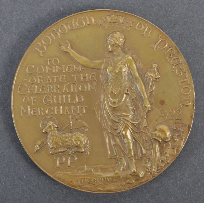 Collection of antique medallions - an antique 1922 bronze Borough Of Preston Guild Medallion to Commemorate The Celebration Of The Guild Merchant. The Medallion displaying portraits of Henry & Mabel Astley Bell JP Guild Mayor And Mayoress. Makers mark for Spink & Son. Diameter; 7.5cm, Gross Weight; 230.6g