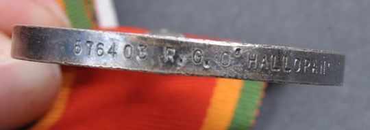 A WWII Second World War interest medal group awarded to one 576403 R.G. O'Halloran. The group comprising: 1939-45 Star, Africa Star, Italy Star, Defence Medal, War Medal and Africa Service Medal (impressed 576403 RG O'Halloran). All with original ribbons present.