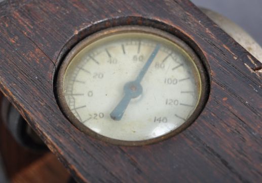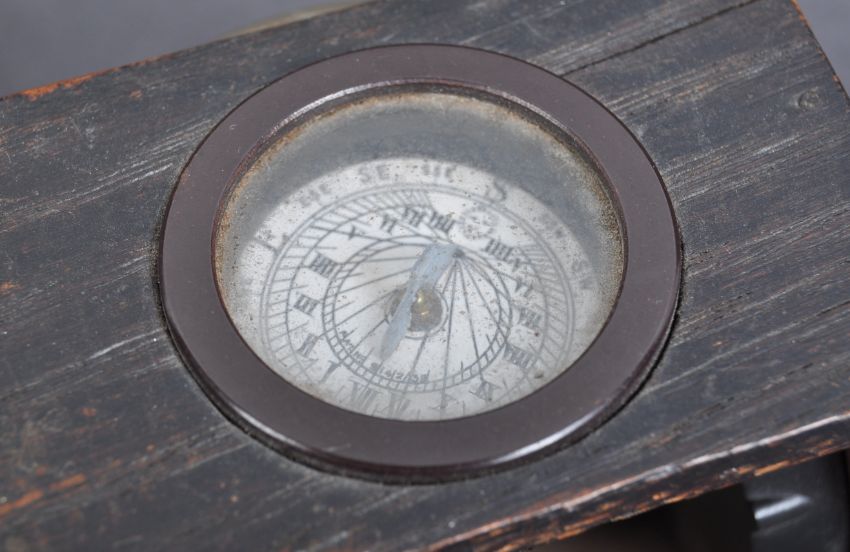 A collection of x3 WWI First World War period and later compasses to include a British Army 1912 dated Verners pattern officers marching compass with hinged lid and broad arrow mark, a brown wooden boxed compass with floating dial face and a cubed box with a compass to one side and x3 other dials, one appearing to be a damp detector. Interesting items.