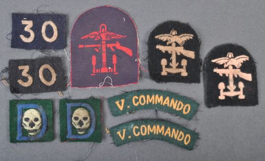 WWII Second World War Interest - a collection of assorted 20th century cloth uniform type patches - all largely being commando / special forces related, including V. Commando shoulder titles, ' 30 ' titles and others. Age unknown, buyer discretion advised.