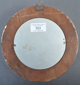 An original WWII Second World War Third Reich Nazi German wall mounted Marine clock. The clock depicting the eagle and Swastika emblem to the face dial, above a letter M, likely for Marine. Surrounded by oak casing. Measures approx 20cm in diameter