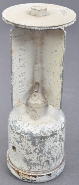 A scarce original WWII Second World War 1942 dated ' No. 68 ATI/L Anti-Tank rifle grenade. Complete example (inert), including pin and fins. Various official stampings present, and still retains its original tag. Marked ' DRILL ' to end. Measures approx; 17cm tall.
