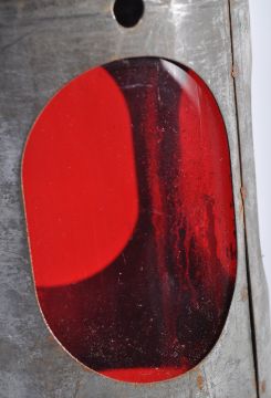 An original early 20th Century British Railways guards headlamp / signalling lamp. The lamp of cylindrical form having a round bevelled rotating glass windows to the front and carry handle to the top and back. Retaining the original red and blue lenses behind the hinged door. Embossed BR to the side. Good example