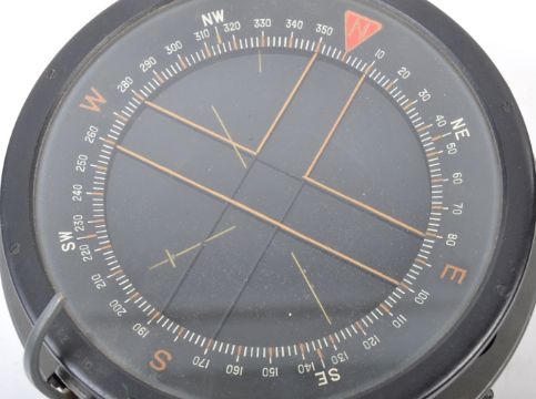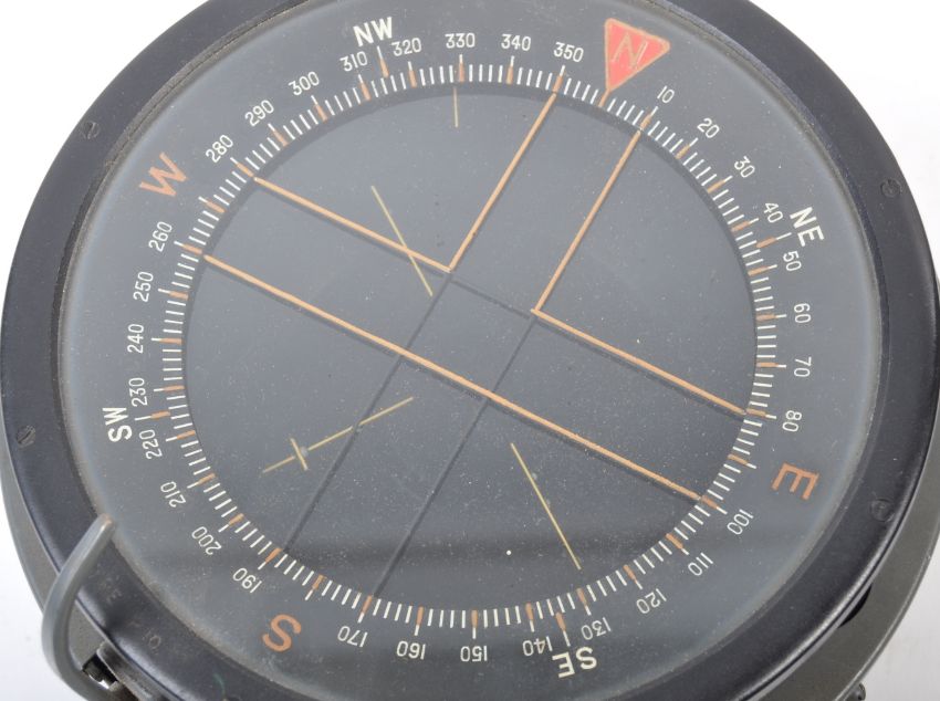 An original WWII Second World War RAF Royal Air Force issue Lancaster Navigator's navigational P10 Compass. The compass mounted on a metal base, with broad arrow stamp and other Air Ministry markings. Serial No. 29958 B. Measures approx 9x19cm