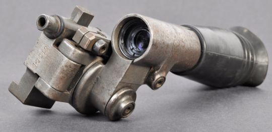 A WWII Second World War period German Army Bazooka / Grenade Launcher optic / sight. The rubber eye piece with makers marks for Hensoldt Wetzlar. The body stamped with serial number 12217. Optics in fine working condition. Rare. Measures approx; 18cm long.