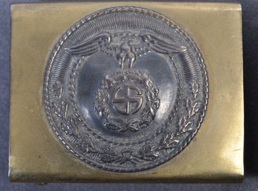 Two original WWII Second World War German Third Reich Nazi ' SA ' uniform belt buckles. The buckles with eagle and swastika motif to centre. Unmarked to the reverse.
