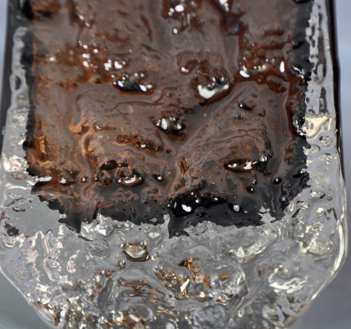 Geoffrey Baxter - Whitefriars - Three pieces of original vintage 20th Century studio art glass Coffin vases to include red, cinnamon and pewter colourways. Typical textured bark effect form. Each approx; 23cm tall.