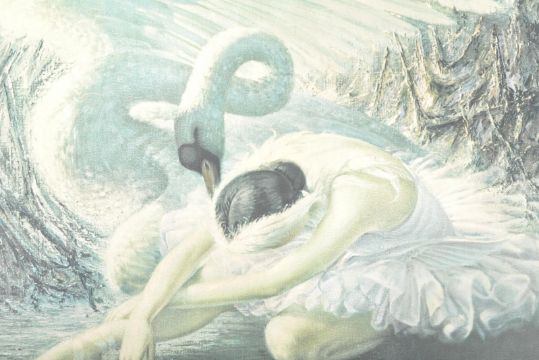 Vladimir Tretchikoff - The Dying Swan - Alicia Markova - A 1960's retro vintage print depicting famous British Ballerina Markova and an injured swan. Set to a period frame. Measures approx; 51cm x 68cm.