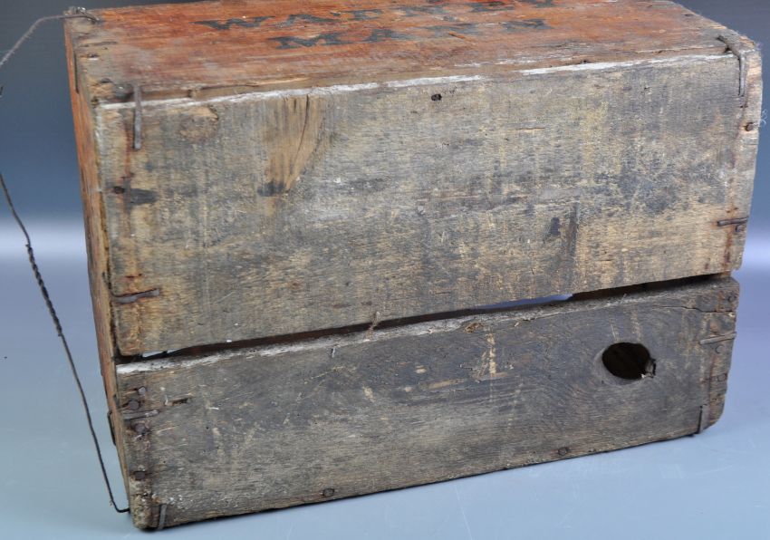 Watney Mann - A vintage early 20th Century point of sale advertising shop display carry crate for Watney Mann brewery. Painted lettering to the sides with carrying handle to each end. Measures approx  24cm x 44cm x 30cm.