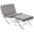 After Ludwig Mies Van der Rohe & Lilly Reich - Barcelona Chair & Footstool - A contemporary low easy / lounge chair / armchair and matching ottoman footstool having a chromed steel ' X ' frame with brown leather strapping and leather button backed cushions for backrest and seat. Measures: 75cm x 76cm x 77cm.