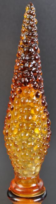 Empoli Glass - Genie - An original retro vintage 1960's Italian studio art glass bottle vase of tall form having a pointed bubbled stopper over a tapering textured body in a good amber / orange citrine colour. Measures approx; 56cm tall.