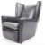 A retro vintage 20th Century faux black leather wingback fireside / office armchair. The chair having a tall wingback backrest with blue and grey fabric upholstered seat cushion. All being raised on castors. Measures approx 82cm x 85cm x 87cm