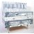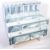 A contemporary quality laminated Hollywood Regency shop haberdashery display advertising point of sale / event stand of L-shape form. The display unit having a thick applied blue laminate mimicking a Victorian dressing table / washstand with curtains detailing below. All being raised on screw polished metal leg supports. Measures approx 116cm x 110cm x 78cm.