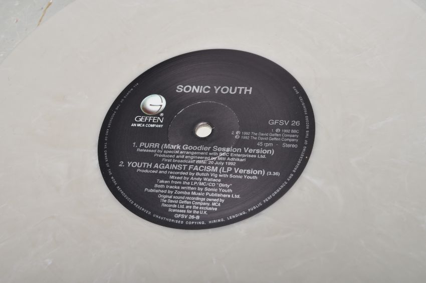 A vintage late 20th century limited edition number white vinyl LP record by Sonic Youth. Vinyl No 0248.  GFSV 26. Media condition NM Sleeve condition VG+