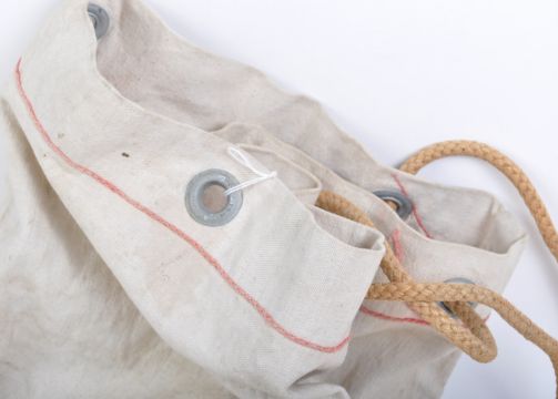 Two WWII Second World War Third Reich Nazi German Kriegsmarine kit bag and grain sack. Both of linen construction, the grain sack having the Swastika and eagle emblem to the centre and the kit bag unmarked with rope drawstring to the top.
