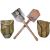 Two WWII Second World War period US Army stamped entrenching tools / shovels. Both housed within their original canvas covers, one retaining remnants of original green paint to handle. Various conditions. Measures approx; 56cm long (folded away).