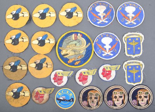 WWII Second World War USAAF Interest - a collection of WW2 replica United States Army Air Force cloth formation / unit / jacket patches. Various types and designs present, including some duplicates. Largest approx; 15cm diameter.