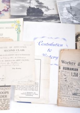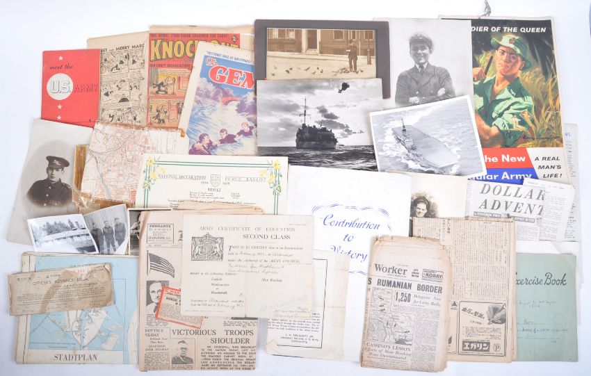 A collection of WWII Second World War (and other periods) related ephemera, to include; a ' Meet The US Army ' pamphlet, photograph of a soldier, an original ' Join The New Regular Army ' recruitment poster, Fifth Army Commendation, map, a 1950s handwritten diary and other items. Interesting assortment.