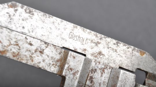 An original WWII Second World War period Nazi German Third Reich issue measuring gauge / precision ruler. Typical form with an impressed eagle and swastika to top, and ' Glashaft ' to side. Measures approx; 27cm long.