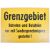 A 20th century German Police / Military Border Patrol warning sign ' Grenzgebiet '. Yellow, with black printed text. Two mounting holes to centre. Laminated hardboard construction. Sign translates as
