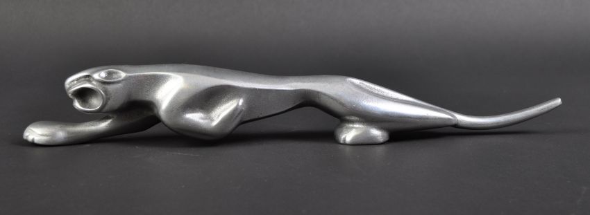 Jaguar - a DP Carter of Pontefract made large 20th century aluminium statue of a prowling Jaguar big cat. Similar to that of Jaguar Cars famous Leaper mascot, but unrelated. Measures approx 30cm long.(394)