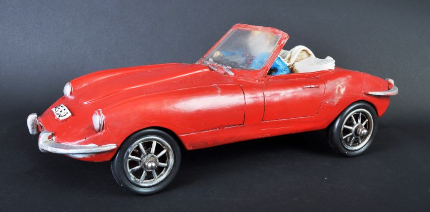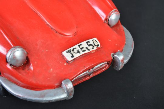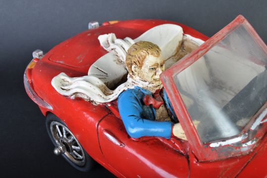 Jaguar - a large 20th century resin model of a classic convertable E Type Jaguar. Red, with driver seated to interior. Well modelled and highly detailed with moving wheels. Measures approx 44cm long(279)