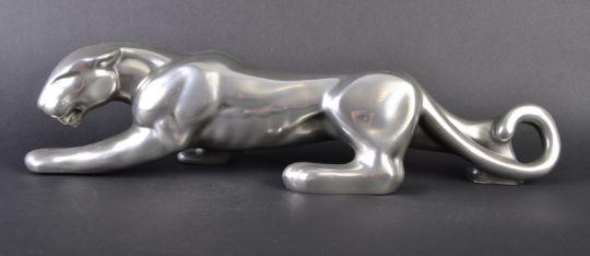 Jaguar - a large 20th century aluminium statue of a prowling Jaguar big cat. Similar to that of Jaguar Cars famous Leaper mascot, but unrelated. Measures approx 39cm long. (17)