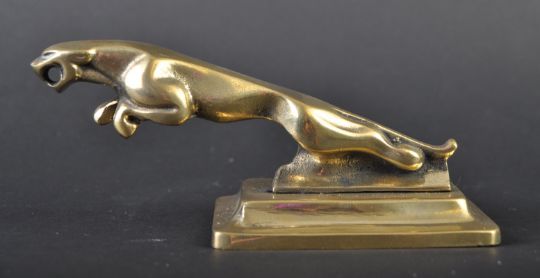 Jaguar Mascot - a mid 20th century ornamental Jaguar made Leaper car mascot mounted on a squared brass base. Nose to tail 12cm(261)
