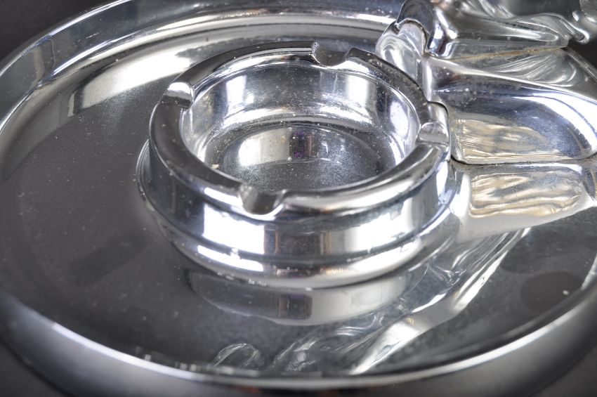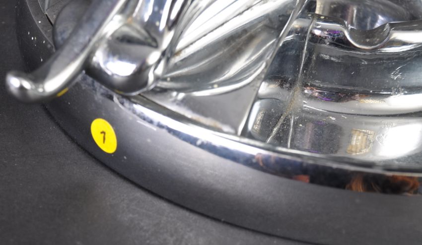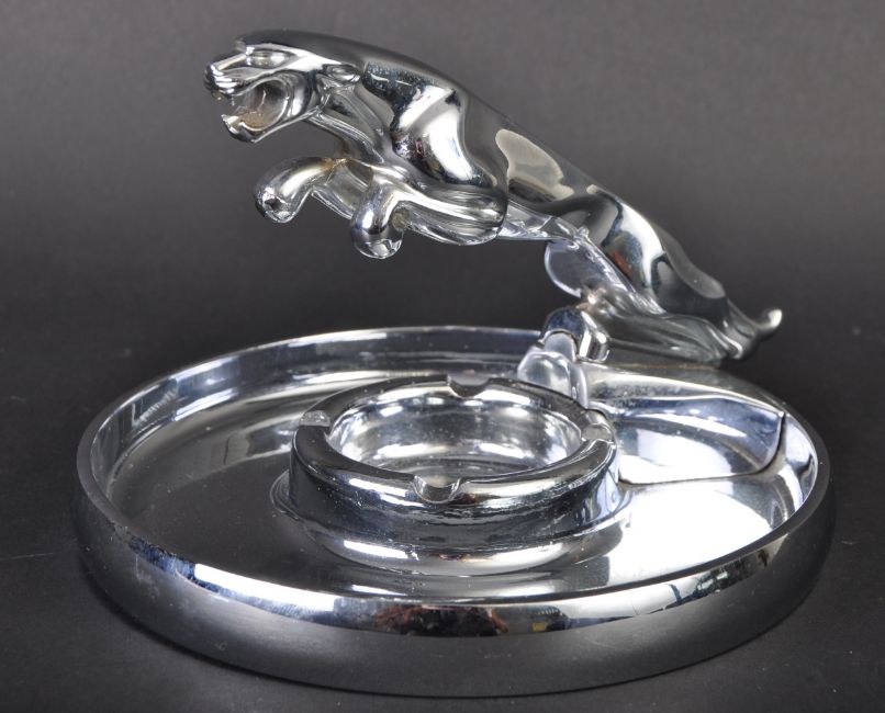 Jaguar - an original vintage 1960s Jaguar made promotional brass chrome ashtray. Type 2 mascot fitted to top, with a bowl shaped base with central circular cigarette rest. As given away to main dealerships in the 1960s by Jaguar. 17cm diameter. (1)