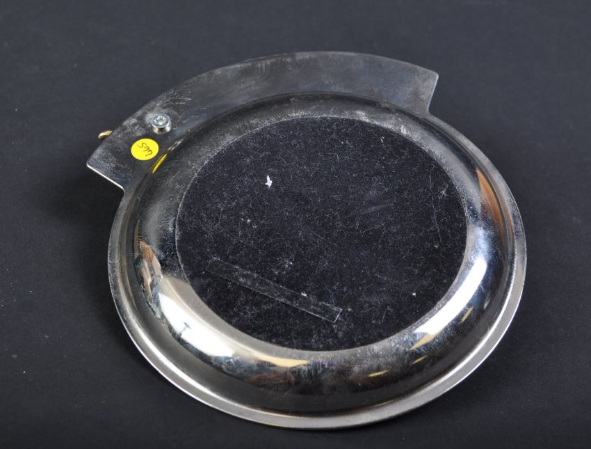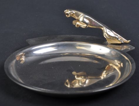 Jaguar - original vintage 20th century steel cigarette ashtray, with a Jaguar Leaper chrome bonnet mascot fitted. Circular design, with ashtray base. Measures approx; 13cm long.(465)