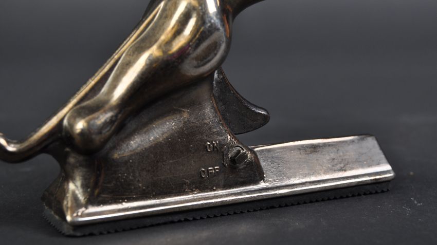 Jaguar - an original 20th century Panther made Jaguar promotional cigarette lighter in the form of a chrome leaper mascot. Plastic construction, with a trigger action and badge. Measures approx 15cm long.