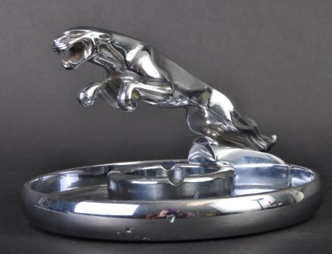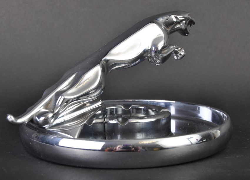 Jaguar - an original vintage 1960s Jaguar made promotional brass chrome ashtray. Leaper mascot fitted to top, with a bowl shaped base with central circular cigarette rest. As given away to main dealerships in the 1960s by Jaguar. 17cm diameter. (295)