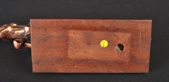 Bronze Jaguar Mascot - an original vintage 1970s Jaguar Leaper car radiator mascot. Unusually cast, in bronze, on a variation base. Mounted on a wooden display plinth. Nose to tail 20cm.