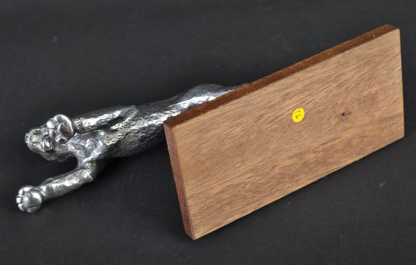 Desmo Car Mascot - an original 1930s vintage variation Desmo made leaping cat car radiator mascot. Chrome, with a detailed body. Nickel plated, and mounted on a later wooden display plinth. Measures approx 19cm long.