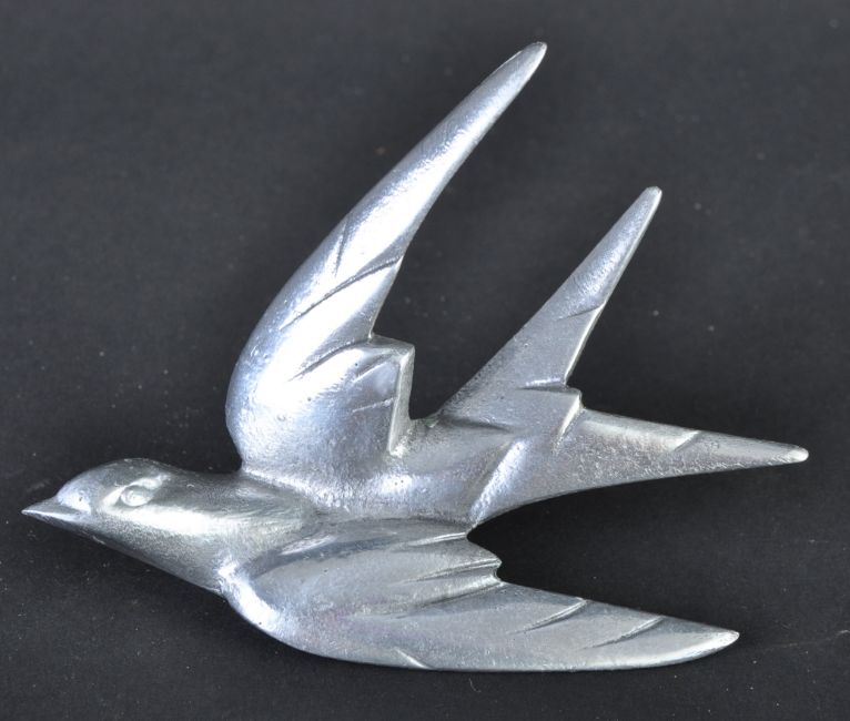 Mascot - an original 20th century vintage Parkside made metal Swallow / Bird wall plaque repurposed as a car mascot. Maker's marks to the underside. These were usually painted and sold in sets, this unpainted version is unusual. 11cm long.(40)