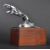 Jaguar Mascot - an original vintage chrome Type 9 'sprung' Jaguar car bonnet Leaper mascot. Typical form, with a shaped oval base. Sixth variation of the sprung forms. Mounted on a wooden display plinth. Nose to tail 13cm. (248)