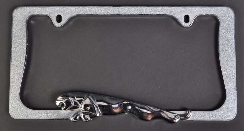 Jaguar - an original vintage American made Jaguar leaper mascot fronted number / license plate surround. Typical square form, with a half-leaper to front. Measures approx; 31cm long (433)