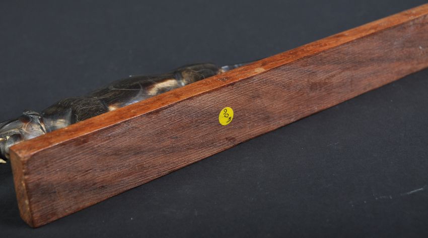 Jaguar - a 20th century carved horn statue of a prowling Jaguar / big cat. Loosely similar to that of Jaguar Cars famous Leaper mascot, but unrelated. Mounted on a wooden display base. Measures approx 25cm long. (406)