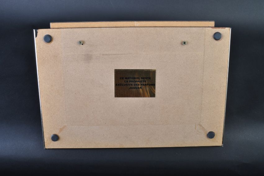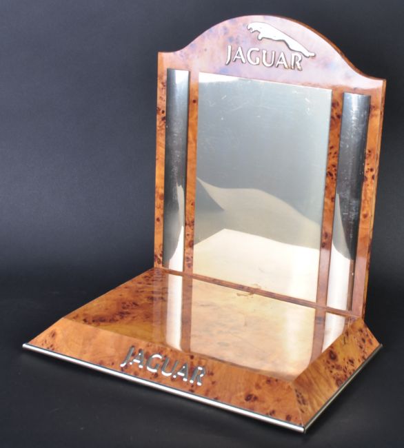 Jaguar - a scarce original vintage 20th century Jaguar made perfume / aftershave countertop in-store shop display stand. Plastic construction, with a mirrored background. Set with Jaguar mascots and emblems to the top and bottom, with a level base to allow for the display of products. Measures approx 32cm tall. (165)