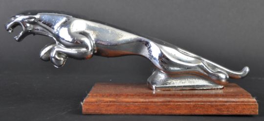 Jaguar Mascot - an original 20th century Jaguar made Leaper. American made Hoodgem variation. Hollow form, with chrome plated body. Mounted on a wooden display plinth. Nose to tail 19cm.(151)