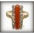 An antique 18ct gold coral and diamond ring. The ring having a central cabochon of coral flanked by two rows of old cut diamonds having trefoil shoulders and a ribbed shank. Marked 18 BHJ - Tests 18ct gold.  Estimated diamond weight 0.60ct. Size M.5. Weight 2.9g