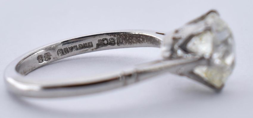 An 18ct white gold and diamond solitaire ring. The ring set with an old European cut diamond in a cathedral setting. Estimated diamond weight 2.37ct. Measures approx 8mm x 7.8mm x 5.8mm. Total weight 3.2g / Size K