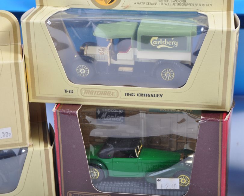 A collection of x35 vintage Matchbox made Models Of Yesteryear boxed diecast models - largely advertising related, many Steam vehicles present. All models appearing mint and unused, within its original display box.