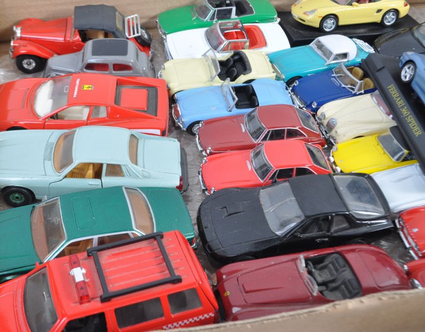 A large collection of assorted diecast model cars, largely of 1/43 precision scale models of various makers to include IXO Museum Alfa Romeo, Norev Volkswagen EOS, Hotwheels Ferrari 430 Scuderia, Herpa Mercedes-Benz E 320 Limousine and a large quantity of unboxed Corgi, Vanguards, Dinky and other examples. Good assortment.