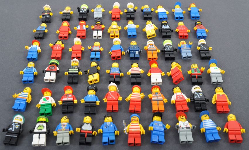 Lego - a large collection of approx x60 official Lego made minifigures. Figures from various themes present, mostly vintage 1990s. Some with accessories / helmets.