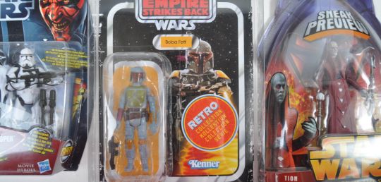 A collection of x16 assorted Hasbro and Kenner made Star Wars carded action figures comprising Kenner Retro Collection, Hasbro Power of The Force, Power Of The Jedi Attack Of the Clones editions and others. Examples to include Boba Fett, Darth Vader, Darth Maul, C-3PO, Luke Skywalker, Clone Troopers and more. All figures appearing mint and sealed with weapons and accessories. Good collection.
