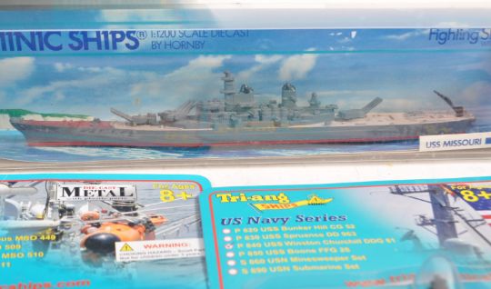 A large collection of x74 Tri-ang Ships - all contemporary re-issued models, after the Triang Minic originals. Each appears carded as new and unused, includes various battleships from various world navies. x2 being vintage Minic Ships in their original boxes. Great collection of unopened models.