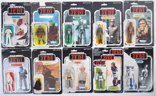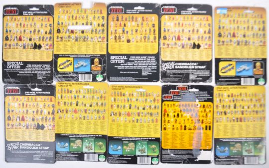 Star Wars - a collection of x10 original vintage Palitoy / Kenner made Star Wars action figures, with their original card backs. Includes; 8D8, Imperial Stormtrooper (Hoth Battle Gear), Chewbacca, Jawa, Lobot, Nikto (Tri-Logo), Imperial Commander, Zuckuss, Gamorrean Guard, and Admiral Ackbar. All loose figures, none with weapons. Card backs of various conditions. All from a genuine childhood collection.